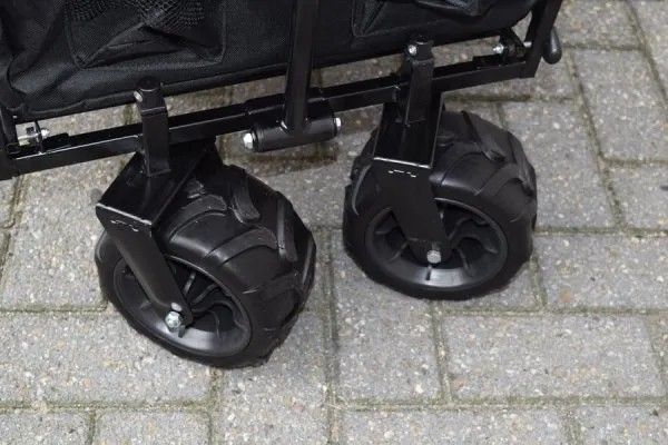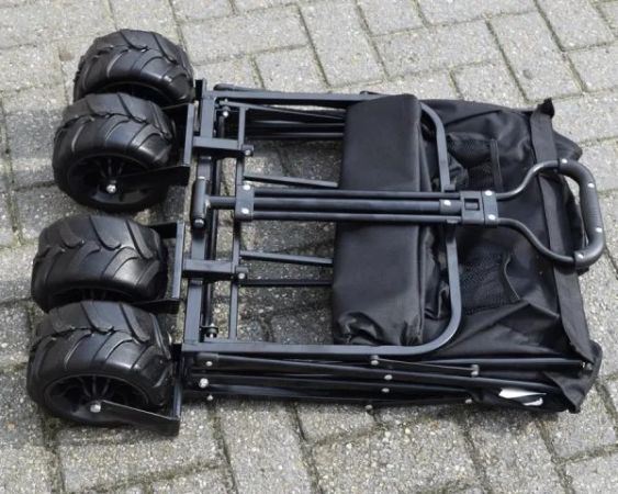 Der Wagen lässt sich zusammenklappen und für einen einfachen Transport und Lagerung zusammenfalten.